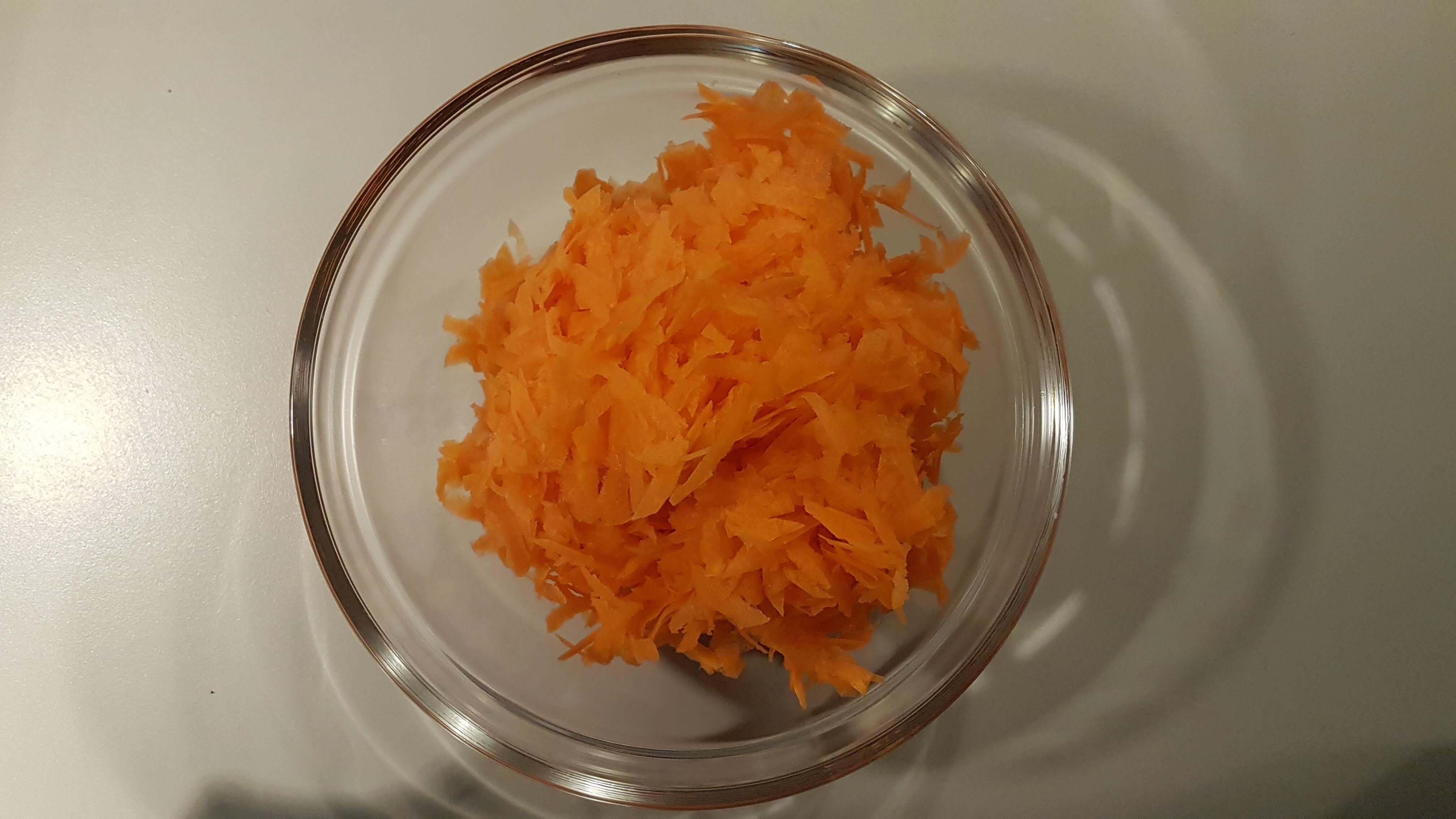 Brug et mandolinjern til at få skåret gulerødderne i lange og tynde skiver.