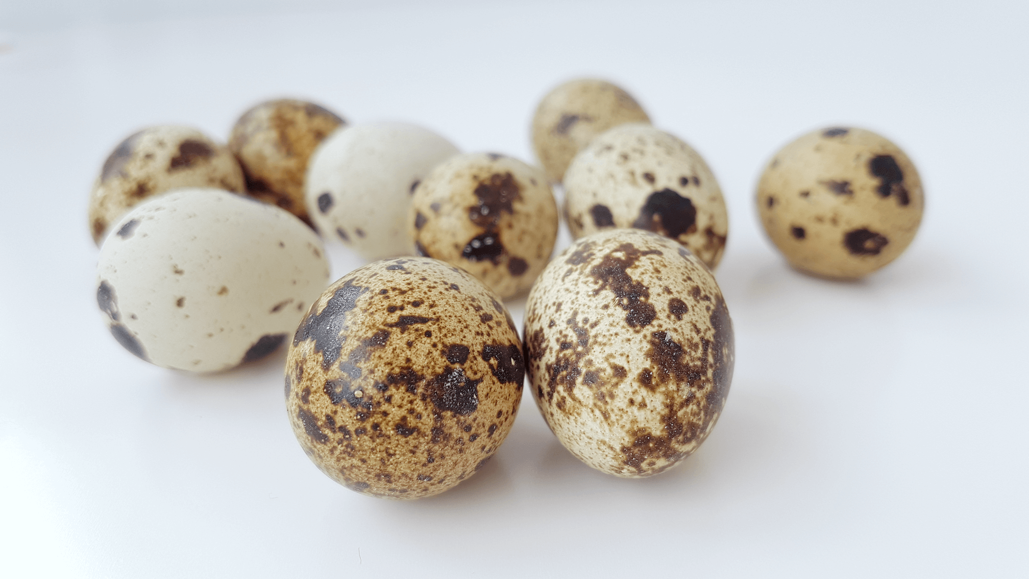 Set fra siden for sammenligningen af vagtelæg og et hønseæg.