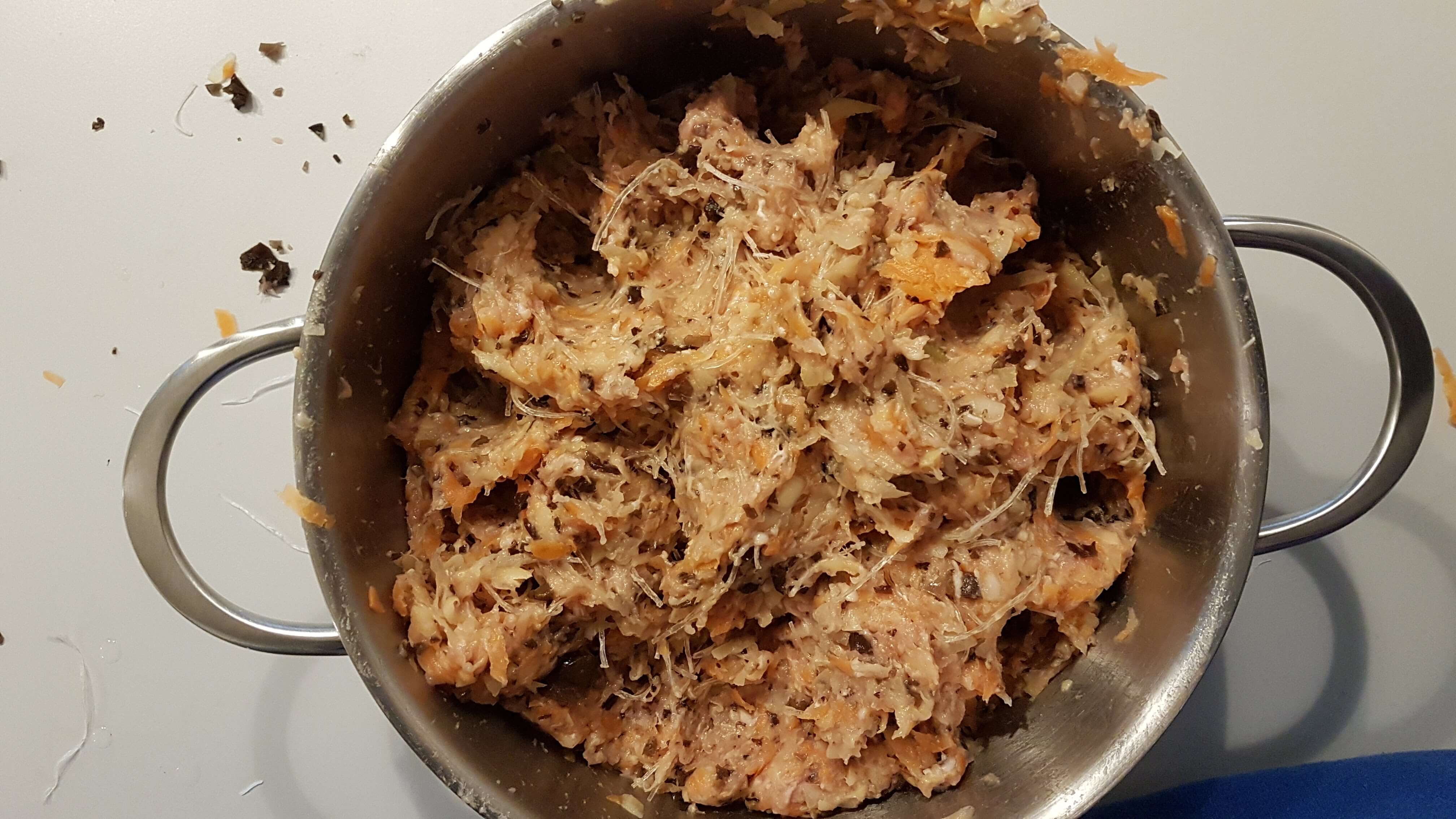 Tag en lille klump af fyldet, steg det på en pande og smag fyldet til efterfølgende efter behøv.