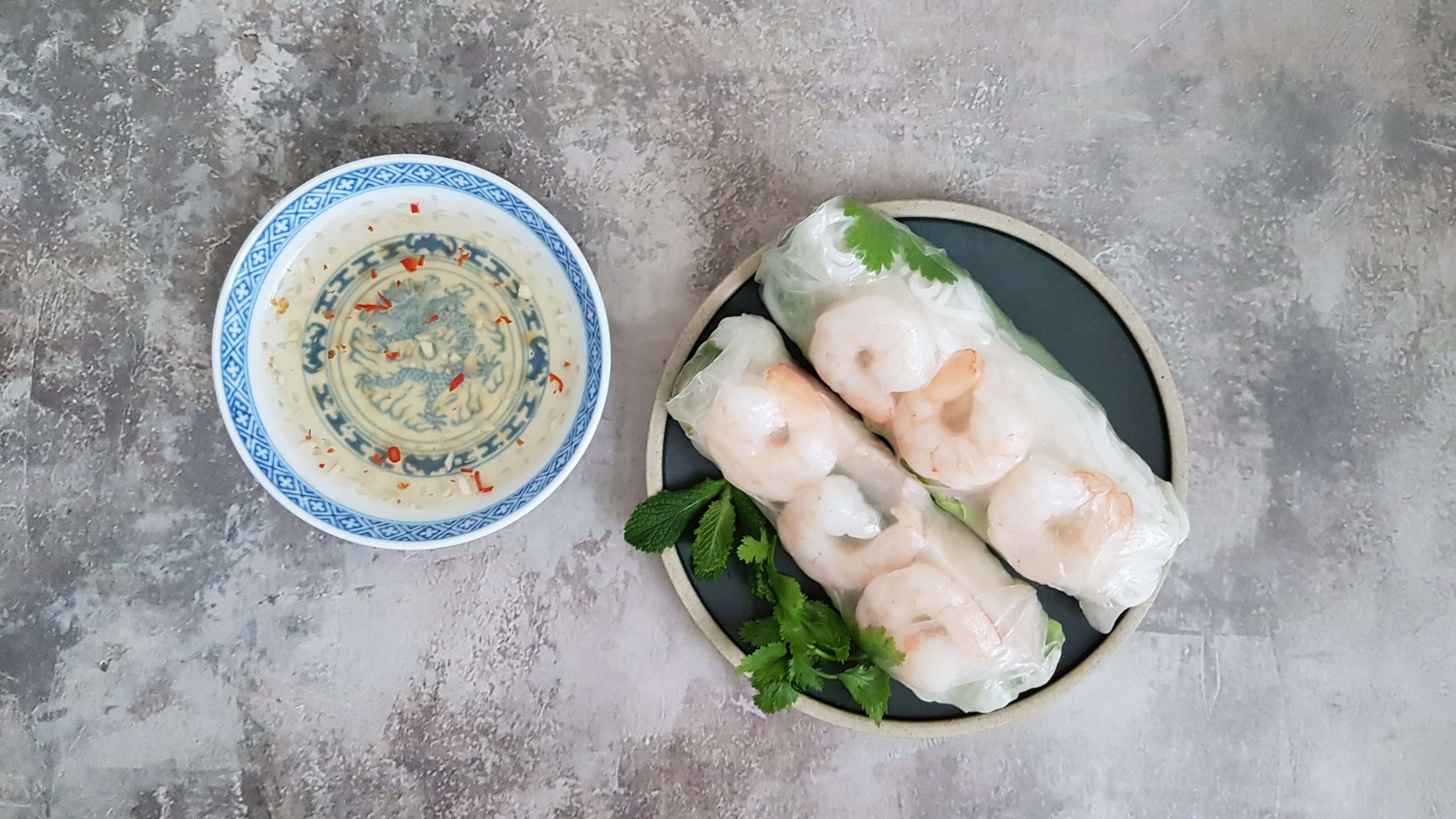 The rolls can be done while you eat or roll them all first and eat afterwards. Remember to cover the rolls with film or something similar to avoid the rice paper drying out.